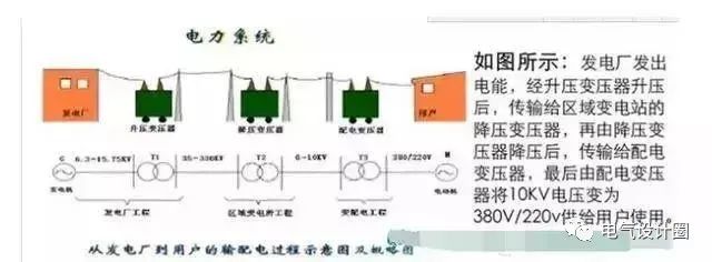 电力系统的概念是:由发电、输电、变电、配电、用电的设备及相应的辅助系统组成的电能生产、输送、分配、使用的统一整体。